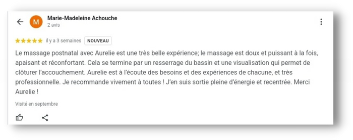 J’ai complété mon panel avec de la Relaxation Aquatique spécialisée autour des femmes enceintes, du couple chez Watsu France et aussi des massages spécifiques chez Harmonysia.